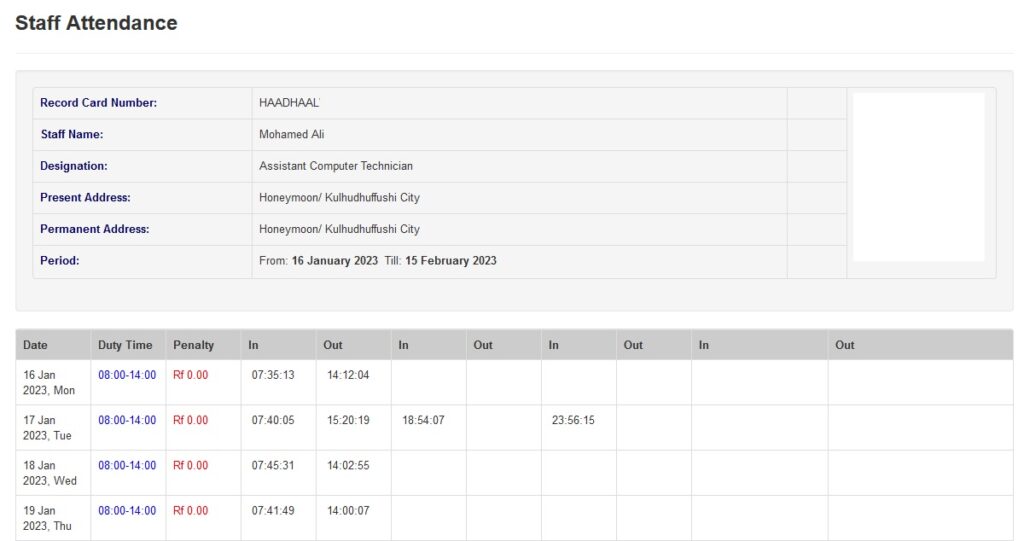 ● އެމުވައްޒަފެއްގެ ޙާޟިރީ ބެލުން