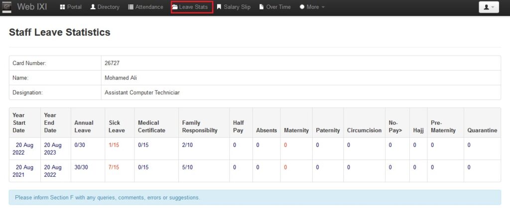 ● މަތީގައިވާ Leave Stats އަށް ފިތާލާ